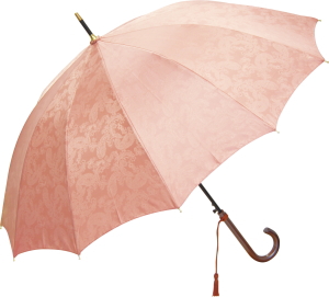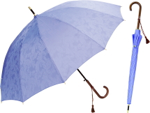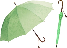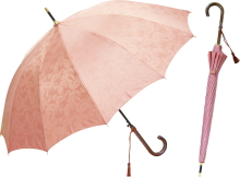 上品なジャガード織生地を使用した晴雨兼用傘。耐久性に優れたグラスファイバーを使用。