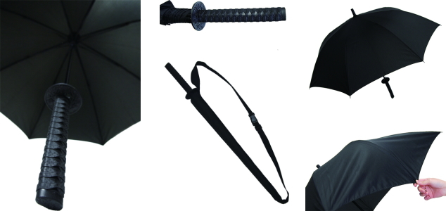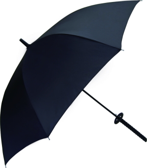日本刀を模したジャンプ傘。丈夫で軽いグラスファイバーの骨を使用。専用傘袋付き。